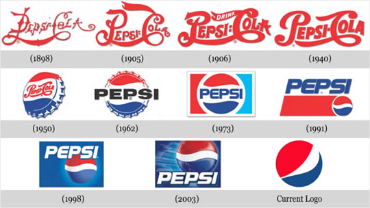 百事三個進化歷程,40以前增肥階段,40到91瓶蓋滾成了個球,91到現在,上躥下跳的球。
